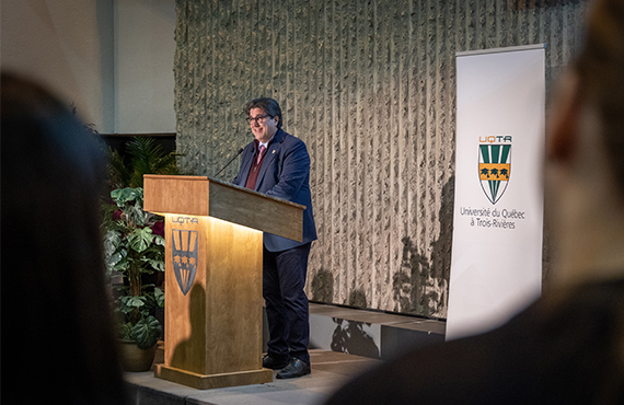 Appelé à prendre la parole lors de l’activité tenue au campus de Trois-Rivières, le recteur Christian Blanchette a transmis des souhaits à l’assistance au nom de l’équipe de direction : santé, sérénité, réussite, bonheur et projets stimulants pour 2026. D’un point de vue plus institutionnel, il a également prescrit l’audace, l’ambition et le temps nécessaire pour réaliser de grandes choses.