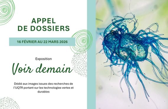 Le Pavillon Pellerin-Marmen de l’UQTR lance la toute première édition de l’exposition Voir demain, un concours dédié aux images issues des recherches universitaires en technologies vertes et durables.