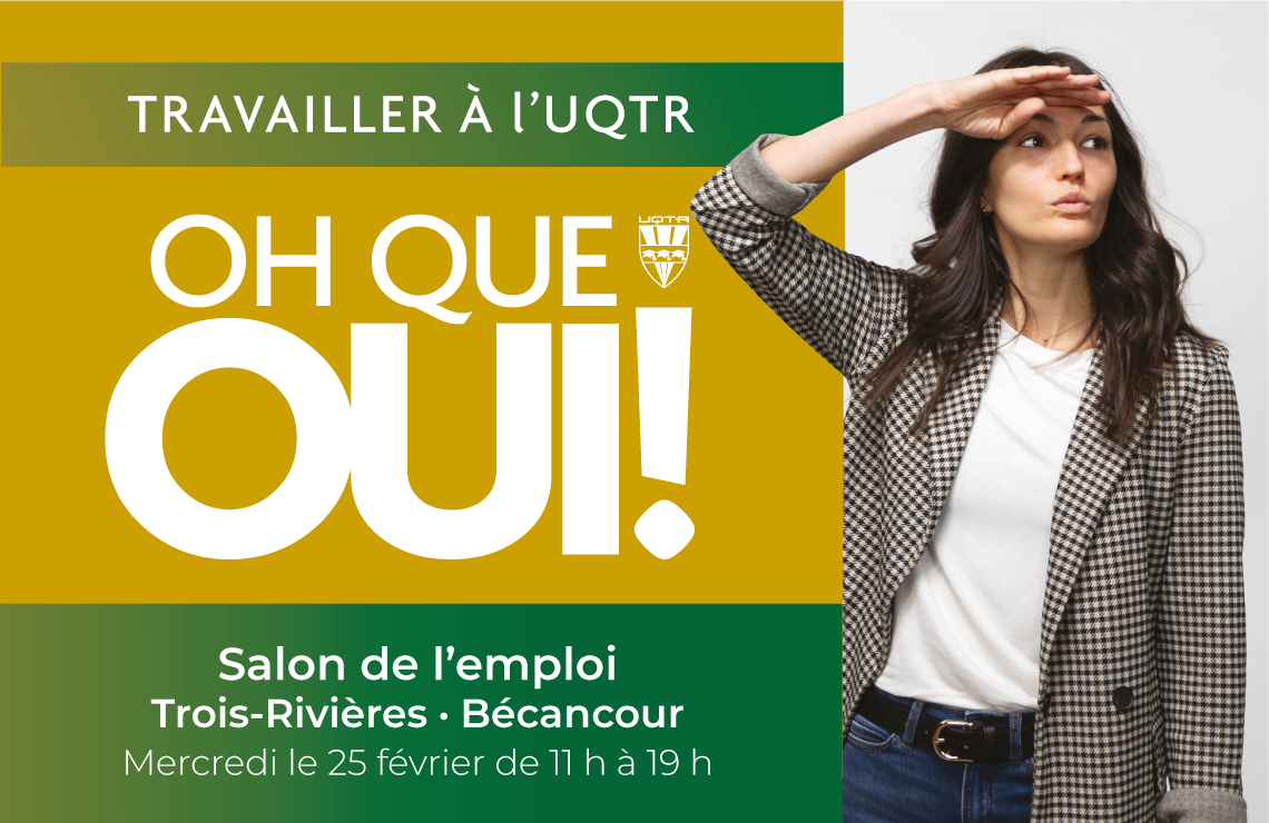 Notre présence nous permettra d’échanger avec de potentiels talents, mais également de mettre de l’avant notre campagne d’attractivité Oh que oui! et de positionner l’UQTR comme un lieu de travail accessible, stimulant et où l’on peut avoir du plaisir dans nos activités professionnelles.