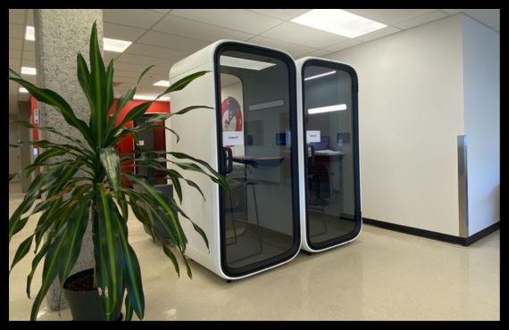 Insonorisées et ventilées, elles offrent un espace propice pour assister à un cours à distance ou participer à une réunion. Ces cabines remplacent les anciennes salles de travail individuel.