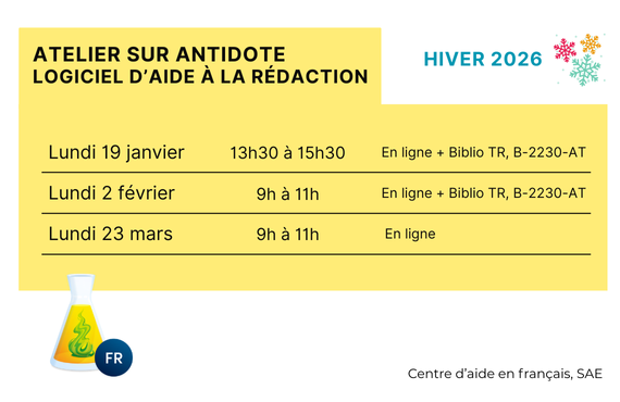 Cet atelier vise à présenter le logiciel d’aide à la rédaction Antidote et ses différents outils.