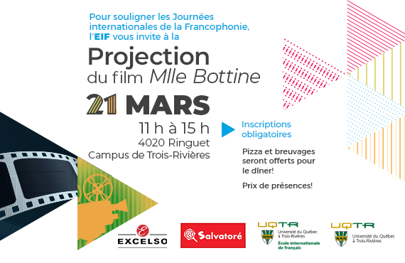 Pour souligner les Journées internationales de la Francophonie, l’École internationale de français organise la projection du film Mlle Bottine.