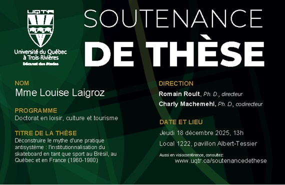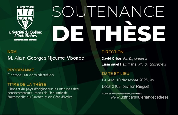3103, Ringuet 3351, des Forges, Trois-Rivières, Québec, CanadaLe Décanat des études vous convie à la soutenance de thèse de monsieur Mohammad Reza Effatparvar du doctorat en sciences biomédicales, qui aura lieu le mardi 25 novembre 2025 à 13h30, au local 3103 du pavillon Ringuet. Le public est invité à assister à la soutenance par visioconférence sur Zoom en allant au lien suivant : […]